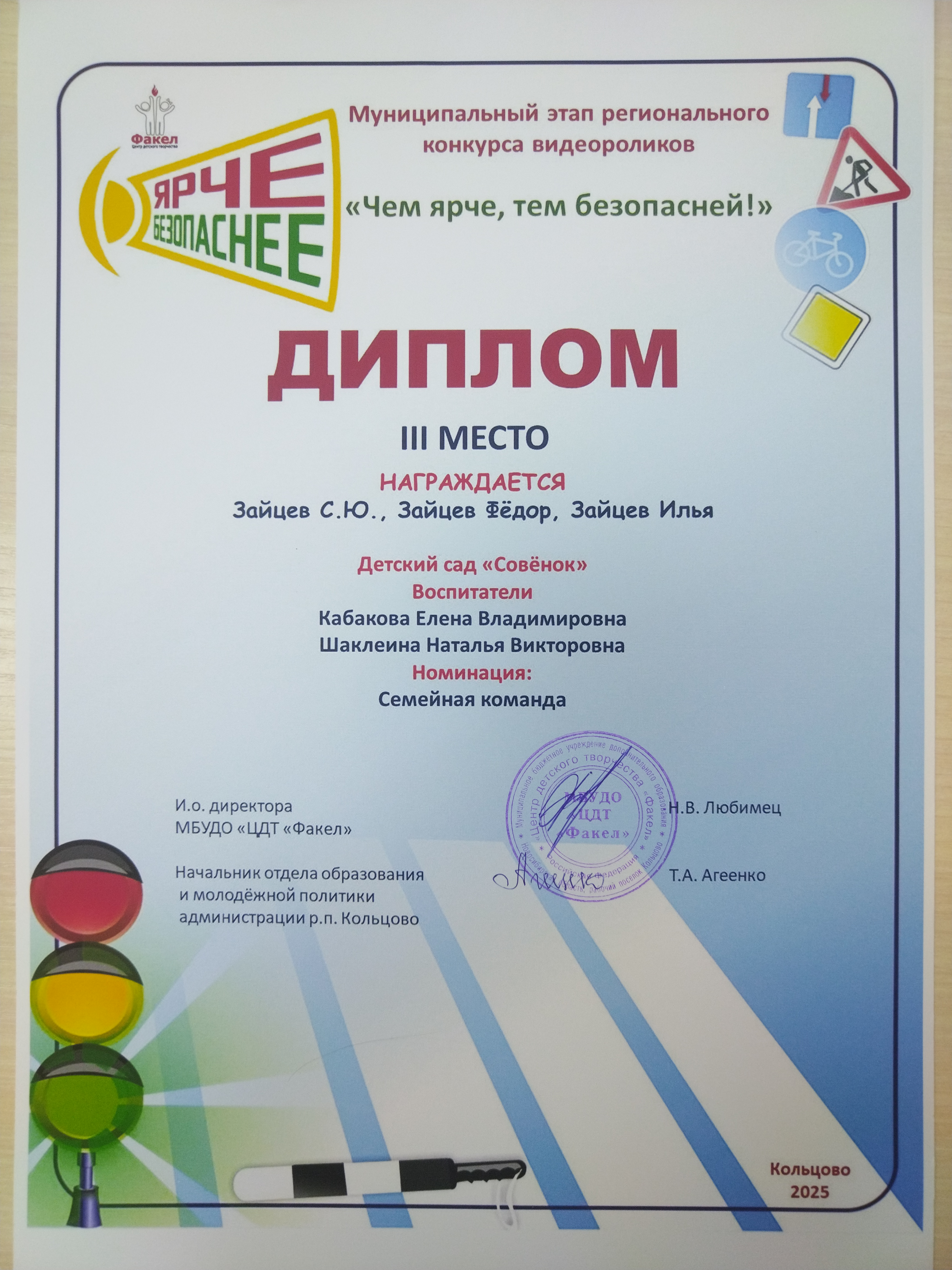 Диплом за 3 место Зайцев Илья